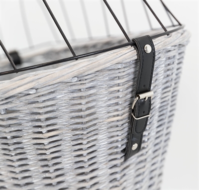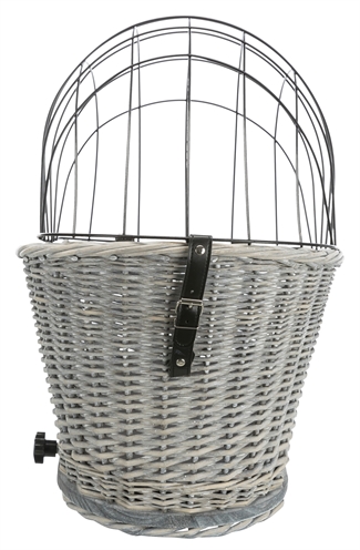 Met de Trixie Fietsmand Bagagedrager Met Rooster Grijs 55X35X49 cm gaat jouw hond comfortabel en veilig met jou mee op al jouw fietstochten. Deze leuke rieten mand is gemaakt van gevlochten wilgentenen in een frisse, zomerse lichtgrijze kleur. De mand is voorzien van een rooster om te voorkomen dat de hond onderweg uit de mand kan springen. De mand kan op bagagedragers met een breedte van 10,5 - 14,5 cm bevestigd worden, zodat je jouw stuur vrij houdt om comfortabel te sturen. Het bijgeleverde kussen met velours-overtrek zorgt voor een comfortabele rit voor jouw dier.