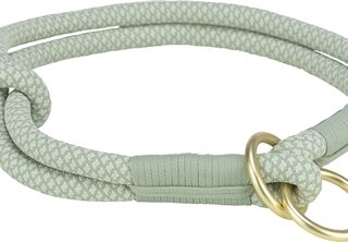 De Trixie Halsband Hond Soft Half-Slip Saliegroen/Mint 40X1 cm is een half-slip halsband zonder ketting, van stevig rond gevlochten touw. Een ideale halsband voor honden die iets te enthousiast zijn aan de lijn, maar voor wie liever geen gebruik maakt van een slipketting. Deze halsband is gemaakt van stevig maar comfortabel rond gevlochten touw in mooie pastelkleuren. Door de handige constructie komt de halsband iets strakker te staan bij veel druk, maar zorgt de knoop, die je zelf kunt plaatsen voor het juiste formaat, voor een blokkade die voorkomt dat de halsband volledig strak trekt. Eenvoudig om- en af te doen!