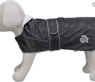 De Trixie Jas Orléans Zwart van 80 cm is een waterdichte regenjas met fleece voering voor de hond, met verstelbare buikband en reflecterende elementen. Met deze fijne regenjas van Trixie blijft jouw hond droog tijdens regenachtige wandelingen. De jas valt geheel over de rug en schouders van de hond heen en zorgt er zo voor dat er geen water naar binnen kan lopen, zonder dat de bewegingsvrijheid bij de poten verloren gaat. De jas is voorzien van een buikband die rondom loopt en verstelbaar is voor een goede pasvorm. De reflecterende elementen zorgen dat jouw hond beter zichtbaar is in het donker. Het borstgedeelte sluit met klittenband.