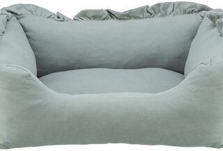 De Trixie Hondenmand Amelie Hoekig Saliegroen 60X50 cm is een origineel hondenbed van linnen stof met vast geïntegreerd kussen en slipvaste onderkant.