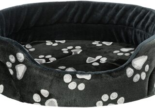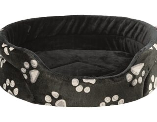 De Trixie Mand Jimmy Ovaal Zwart Met Pootprint 44 x 35 cm is een zachte hondenmand met opstaande rand en lage instap, met schuimrubber vulling, wendbaar kussen en slipvaste onderkant. Deze mand biedt jouw hond een fijne plek om in weg te kruipen. Mand Jimmy heeft een opstaande rand met schuimrubber vulling, bekleed met zacht pluche voor meer comfort en een veilig gevoel. De lage instap zorgt ervoor dat ook honden die kleiner zijn of slecht ter been zijn gemakkelijk de mand in kunnen stappen. De mand is voorzien van een wendbaar kussen en een slipvaste onderkant. Hierdoor wordt voorkomen dat de mand verschuift bij het in- en uitstappen.