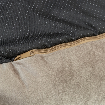 De afneembare hoes is gemaakt van gerecycled materiaal kan gewassen worden in de wasmachine op 40 graden, de vulling kan met de hand gewassen worden. De antislip onderkant en het vast geïntegreerde kussen zorgen ervoor dat de mand stevig blijft liggen.