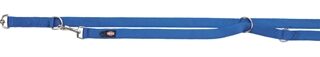 De Trixie Premium Hondenriem Dubbelgestikt Verstelbaar Royal Blauw 200 x 2 cm is een nylon looplijn voor de hond van singelband, drievoudig verstelbaar en met extra oogjes. Zo is de lijn geschikt voor meerdere doeleinden en kan je jouw hond op een lengte laten lopen die voor de situatie het meest geschikt is. Je kunt hem eenvoudig verstellen door de musketonhaak aan één van de ringen te klikken. Ook de andere kant eindigt in een musketonhaak, voor gemakkelijke bevestiging aan halsband of tuig. De extra oogjes zijn ook geschikt om bijvoorbeeld een penning of lampje aan te hangen. Strak, degelijk en toch heel functioneel!