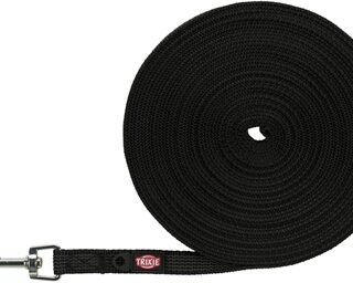 De Trixie Hondenriem Sleeplijn Met Rubber Bekleed Zwart 15 m x 1,5 cm is een sleeplijn bekleed met rubber voor meer grip en bescherming tegen weersinvloeden. Door deze combinatie en de lengte van 15 meter kun je jouw hond in elke situatie en elk seizoen meer bewegingsvrijheid geven. Door de bekleding met rubber is de lijn gemakkelijk te reinigen. De lijn is uitgevoerd zonder handlus en heeft een extra oogje om een hondenpenning of flasher aan te bevestigen.