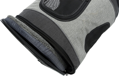 Heb jij een hond die graag met je mee op pad gaat? Dan is deze handige hondendraagtas van Trixie iets voor jullie! De Trixie Timon tas is uitgevoerd als rugtas die gemaakt van degelijk polyester en extra zacht gevoerd is met schapenvacht look. De traploos verstelbare taille- en schouderriemen maken dat de tas helemaal naar jouw lichaam aan te passen is en het draagcomfort hoog is, net als de anatomische gevormde schouderriemen en de tailleriem die zorgt voor optimale verdeling van het gewicht. De tas is aan de voorkant en bovenkant te openen en heeft gaas inzetstukjes, zodat jouw hond voldoende ventilatie heeft en indien gewenst ook lekker met je mee kan kijken. Een geïntegreerde korthouder zorgt ervoor dat de hond niet onverwachts uit de tas kan springen. Verder is de tas voorzien van reflecterende stroken zodat jullie goed opvallen in het donker. Waar je ook naartoe gaat, met de Timon hondentas van Trixie gaan jouw lieveling en zijn spulletjes dus altijd comfortabel met je mee!