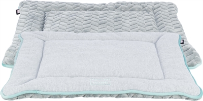 De Trixie Junior Ligmat Lichtgrijs/Groen 70X50 cm is een comfortabele, dubbelzijdige ligmat van zacht fleece, ideaal voor pups, kleinere honden of katten. Jouw hond droomt heerlijk weg op deze fijne mat van Trixie! Deze ligmat voor de hond of kat is gemaakt van heerlijke zachte stof, met één kant van pluche en één kant van sweatstof. Stoer en schattig in één, net als de kleurstelling! De mat is gevoerd met polyestervlies vulling voor meer comfort. Wasbaar met de hand voor een langere levensduur.