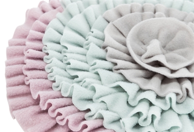 De Trixie Junior Snuffelmat Zacht Roze / Mintgroen / Grijs 38 x 38 cm is een originele, ronde snuffelmat voor puppy's en kittens, ideaal tegen verveling en schrokken en gewoon heel leuk! Deze ronde mat leent zich perfect om er snacks en snoepjes in te verstoppen, zodat jouw dier lekker langere tijd bezig is met het zoeken naar zijn beloning. Dit stimuleert natuurlijk gedrag en gaat verveling tegen. Ook kan de mat gebruikt worden voor het verstrekken van het dagelijkse voer: zo voorkom je schrokken en is het dier lekker lang actief bezig met het zoeken naar eten. De mat komt met een uitneembare kunststof plaat die de mat netjes in vorm houdt en eenvoudige reiniging mogelijk maakt. Inclusief handleiding voor training!