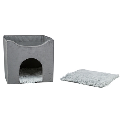 Het Trixie Kattenhuis Harvey Grijs-Wit/Zwart is een een knusse schuilplaats voor jouw kat, met een luxueuze velours-look en zacht langharig pluche voor optimaal comfort. Dit veelzijdige kattenhuis is niet alleen een fijne plek voor je kat, maar kan ook als stijlvolle bijzetmand in je interieur gebruikt worden. Het kattenhuis is inklapbaar en gemakkelijk compact op te bergen wanneer het niet in gebruik is. Schoon te maken door er gewoon een doekje overheen te halen. Geschikt voor katten tot 10 kg.