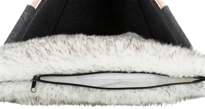De Trixie Kattenmand Tipi Vilt Antraciet 55 x 55 x 65 cm is een kattentent gevormd als tipi, gemaakt van vilt met een heerlijk zacht kussen met langharige pluche. Deze comfortabele, knusse tent voor de kat geeft jouw viervoeter niet alleen een veilig eigen plekje, maar ziet er ook nog eens heel leuk uit. Deze kattenmand is gevormd als tipi, met vier stokken in een punt en een vierkante bodem. De tipi is gemaakt van stijlvol donkergrijs vilt en komt met een heerlijk zacht kussen in wit- en grijstinten dat gemaakt is van langharig pluche. De slipvaste onderkant zorgt ervoor dat de kat de tipi in en uit kan stappen zonder dat deze verschuift. De tipi is inklapbaar en compact op te bergen indien hij niet gebruikt wordt.