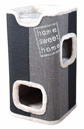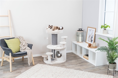 De Trixie Krabpaal Emil Lichtgrijs 69 x 59 x 96 cm is een uitgebreide maar toch compacte krabpaal voor de kat, met relax-mand en schuilhuisje met vitaal kussens die zorgen voor optimale drukverdeling. Krabben is een natuurlijke behoefte van de kat. Hiermee onderhoudt de kat zijn nagels en markeert hij zijn territorium. Biedt jouw kat daarom voldoende krabmogelijkheid, zoals met deze mooie krabpaal van Trixie. Deze krabpaal heeft een stam omwikkeld met sisal om aan te krabben, krabvlak op de bodem en is daarnaast uitgerust met een schuilplaats bekleed met pluche/fleece. De schuilplaats is voorzien van een vitaal kussen met visco-elastisch schuim dat zich aan de lichaamsvorm aanpast, net als het gevoerde ligplateau bovenop. Deze kussen zorgen voor optimale drukverdeling en daardoor beter slapen en soepeler opstaan. Voor goede bereikbaarheid van het ligplateau is de krabpaal uitgerust met opstaphulpjes. De stevige, massieve bodemplaat zorgt voor veel stabiliteit. Een krabpaal met veel mogelijkheden die toch compact is en daarmee ook geschikt voor kleine ruimtes.