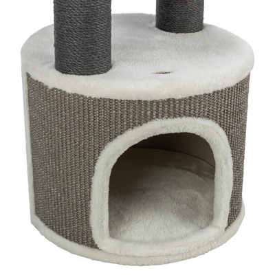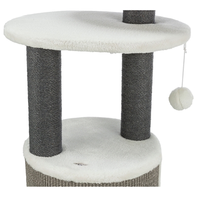De Trixie Krabpaal Marco Wit/Beige 38X38X85 cm is luxe krabpaal met vier verdiepingen en een schuilplaats. Deze krabpaal biedt jouw kat een wereld van plezier en comfort. Met vier verdiepingen bedekt met pluche en palen omwikkeld met jute, biedt deze krabpaal voldoende ruimte voor klimmen, krabben en ontspannen. Jouw kat kan zich heerlijk terugtrekken in de schuilplaats of zich nestelen in de relax-mand. De relax-mand is op de hand te wassen. Voor extra speelplezier is er een speelballetje aan een touw bevestigd. Deze krabpaal is de ideale combinatie van speelruimte en ontspanning voor jouw kat.