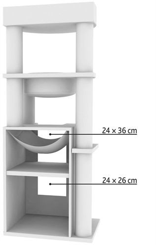 - Uitgerust met een dubbele schuilplaats bekleed met pluche, met afneembare hangmat