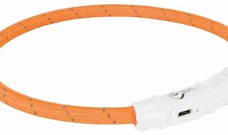 De Trixie Halsband Hond Flash Lichthalsband USB TPU/Nylon Oranje 35X0,7 cm is een lichtgevende halsband voor de hond, gemaakt van TPU/nylon en oplaadbaar met USB-kabel, met tot 5 uur licht. Jouw hond is altijd goed zichtbaar in het donker met deze comfortabele lichtgevende halsband van Trixie! Deze halsband is gemaakt van TPU en nylon voor een prettige pasvorm die bovendien zorgt dat de halsband makkelijk op maat te knippen is. De halsband is uitgerust met licht dat oplaadbaar is met de bijgeleverde USB-kabel. Met één keer laden heeft de halsband tot vijf branduren knipperlicht, en tot drie uur continu-licht. Daarnaast heeft de halsband reflecterende elementen, waardoor de hond ook goed zichtbaar is voor tegemoetkomend verkeer wanneer de halsband uitstaat. Door de click-sluiting maak je de halsband eenvoudig los en vast. Voor goede zichtbaarheid zonder in te leveren op comfort! Wordt geleverd met kabel en schroevendraaier.