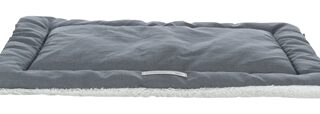 De Trixie Ligmat Farello Wit - Grijs / Grijs van 110 x 75 cm is een platte ligmat voor de hond, met heerlijk zachte polyester en pluche bekleding en 4 cm polyestervlies vulling. Niet alle honden liggen graag op een dik kussen, of hebben liever een plattere ligmat voor onderweg of in de bench. Daar is deze mooie ligmat van Trixie perfect geschikt voor. Deze Farello-mat heeft een 4 cm polyestervlies vulling waardoor hij niet te dik maar toch comfortabel is, ideaal voor honden die niet graag op een heel dik kussen liggen. De ligmat is bekleed met polyester in een mooie geweven stof en heerlijk zacht pluche, zodat jij zelf kunt kiezen welke kant jij het liefste boven wilt. De mat is wasbaar op 40 graden.