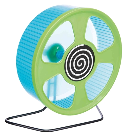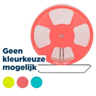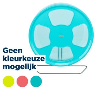 Het Trixie Looprad Kunststof Assorti 28 cm is een loopwiel van groot formaat voor muizen en dwerghamsters, voor minimale belasting van de wervelkolom en bewegen zonder geluidsoverlast. Veel dieren belasten de wervelkolom teveel tijdens het lopen in een loopwiel, omdat zij gebogen moeten lopen in een te klein wiel. Door het royale formaat van dit wiel is dat niet langer aan de order De wervelkolom wordt minimaal belast omdat het dier veel rechter kan lopen en het gesloten loopgedeelte zorgt voor veilig rennen. Het wiel is gemaakt van kunststof voor makkelijk reinigen en loopt soepel en fluisterstil, ideaal omdat muizen en hamsters nachtdieren zijn. Het wiel is met de houder rechtop in de kooi te zetten, maar ook aan de tralies te bevestigen.