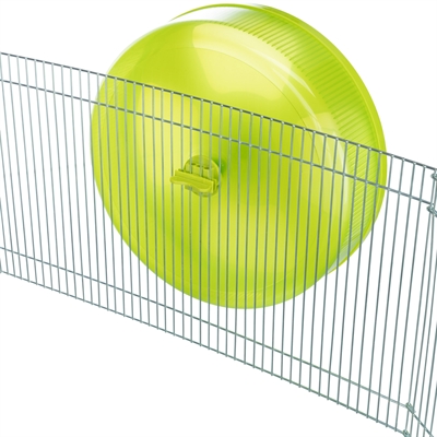 Het Trixie Looprad Kunststof Assorti 28 cm is een loopwiel van groot formaat voor muizen en dwerghamsters, voor minimale belasting van de wervelkolom en bewegen zonder geluidsoverlast. Veel dieren belasten de wervelkolom teveel tijdens het lopen in een loopwiel, omdat zij gebogen moeten lopen in een te klein wiel. Door het royale formaat van dit wiel is dat niet langer aan de order De wervelkolom wordt minimaal belast omdat het dier veel rechter kan lopen en het gesloten loopgedeelte zorgt voor veilig rennen. Het wiel is gemaakt van kunststof voor makkelijk reinigen en loopt soepel en fluisterstil, ideaal omdat muizen en hamsters nachtdieren zijn. Het wiel is met de houder rechtop in de kooi te zetten, maar ook aan de tralies te bevestigen.