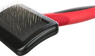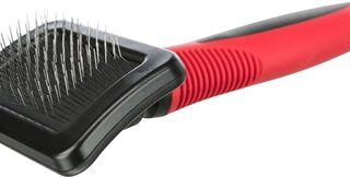 De Trixie Slickerborstel Kunststof 16 x 9 cm is een zachte slickerborstel met zachte metalen pinnen, geschikt voor het borstelen van honden met korte, lange, ruwe en krulvacht. De borstel is gemaakt van kunstof met een handvat met rubberen coating voor meer comfort. Voorzien van zachte metalen pinnen voor het borstelen van zowel de vacht als de ondervacht. Deze kunststof slickerborstel is verkrijgbaar in verschillende maten.