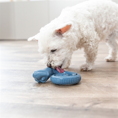 - In de opening kun je snoepjes, brokjes of paté stoppen, die de hond eruit moet zien te krijgen