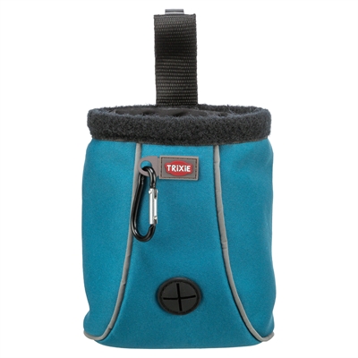 Het Trixie Snackzakje Twist Treat Assorti 14X11 cm is een multifunctionele snackzak voor de hond, met regelbare draaisluiting, poepzakjeshouder en karabijnhaak, waterdicht. Dit handige snackzakje is van alle markten thuis! Uiteraard biedt dit handige tasje alle ruimte voor de beloningssnacks die jij op wandeling mee wil nemen voor jouw hond. Ideaal aan dit tasje is de handige twist off-sluiting. Door de stof strakker of losser in elkaar te draaien, reguleer je de toegang tot de inhoud. De sluiting kan geheel gesloten worden indien er even geen snacks gepakt hoeven te worden en beschermt dan ook tegen de regen. Hiernaast is dit handige zakje voorzien van een geïntegreerde poepzakjes-dispenser, zodat je ook jouw poepzakjes altijd bij de hand hebt zonder nog een extra houder mee te hoeven nemen. Aan de karabijnhaak maak je bijvoorbeeld een hondenfluitje of clicker vast, en in de buitenvakjes stop je losse spulletjes die je op de wandeling meeneemt. Met reflecterende buitenvakken die het tasje goed zichtbaar maken! Met bevestigingslus en -clip voor aan broekriem.
