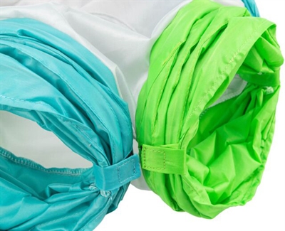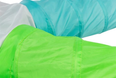 De vormvaste spiraalveer zorgt voor stabiliteit. Het compacte ontwerp is gemakkelijk op te bergen wanneer het niet in gebruik is. De tunnel is gemaakt van een stevig polyester met nylonlook. Het is mogelijk meerdere tunnels aan elkaar te bevestigen.