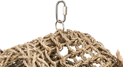 De Trixie Tent Zeegras Hangend 19 x 22 cm is vogelspeelgoed gemaakt van natuurlijk materiaal, een tent van zeegras om in de kooi te hangen geschikt voor bijvoorbeeld parkieten en dwergpapegaaien. Heerlijk om aan te hangen, om te klimmen en lekker te slopen! Dat kan veilig met deze leuke tent daar deze van natuurlijk zeegras gemaakt is. Zeegras is een aantrekkelijk materiaal voor vogels dat naar hartenlust gesloopt mag worden. Door de vorm en structuur is deze tent bovendien zeer geschikt om in en op te klimmen. Voorzien van een ijzeren haak ter ophanging. Ontwikkeld in samenwerking met wereldvogelpark Walsrode.