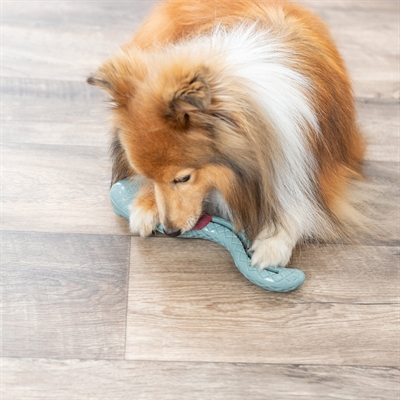 De Trixie TPR Snackslang 27 cm hondenspeelgoed is een hondenspeeltje van TPR die gevuld kan worden met snacks. Wil je jouw hond bezighouden als je er niet bent, of op een leuke manier belonen? Deze vrolijke snack-slang van Trixie biedt daar de perfecte manier voor! De slang is gemaakt van thermoplastisch rubber en is open aan de onderzijde. In deze spleetvormige opening kun je verschillende soorten voer of snacks met een ronde vorm stoppen, zodat de hond spelenderwijs bezig is zijn beloning te krijgen. Door de smalle opening is de slang ook geschikt voor bijvoorbeeld leverworst of een pasta.