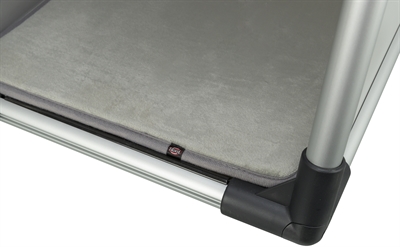 Voor extra veiligheid is de deur uitgerust met een veiligheidssluiting en een gesloten onderste deurruimte, zodat je hond zijn poten niet naar buiten kan steken. De box staat stevig in de kofferbak dankzij de klittenbandstroken aan de onderkant. Bovendien wordt hij geleverd met een slipvaste ligmat die met de hand gewassen kan worden, zodat je hond altijd comfortabel ligt.