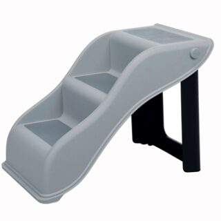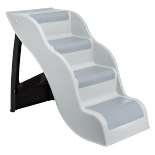 De Trixie Trap Lichtgrijs is een inklapbare kunststof trap met slipvaste voetjes, om de hond binnen en buiten de auto, bank of het bed op te helpen. Is jouw hond slecht ter been of te klein om bepaalde plekken te bereiken waar hij of zij graag komt? Help jouw hond dan met deze handige trap van Trixie! Deze trap is speciaal gemaakt om kleine, oudere of honden met lichamelijke klachten te helpen hoger gelegen plekken te bereiken. De trap is gemaakt van kunststof en makkelijk afneembaar, waardoor je hem binnen voor het bed of de bank kunt gebruiken, maar buiten ook voor hoger of lager gelegen delen van de tuin of zelfs de auto. De standaard van de trap is inklapbaar zodat hij ruimtebesparend is op te bergen en de treden zijn bekleed met antislip TPR-lookvlakken. Ook is de trap voorzien van rubberen antislip voetjes zodat hij niet verschuift tijdens het gebruik en jouw dier zo veilig en zelfverzekerd de trap op kan.