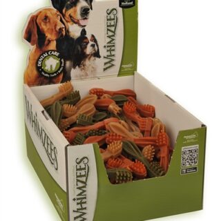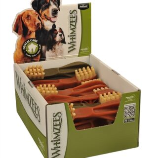 De Whimzees Tandenborstel Star Bulk S 150 stuks is een grootverpakking kauwsnacks voor de hond gemaakt metzoete aardappel, tegen verveling en ter ondersteuning van een gezond gebit. De tandenborstels van Whimzees zijn snacks waar je hond ongetwijfeld achteraan gaat. Deze vegetarische kauwsnacks zijn gemaakt van natuurlijke ingrediënten die helpen bij de spijsvertering en het polijsten van de tanden. Daarnaast zorgen de vezels voor een sterker product. De unieke structuur stimuleert de bloedsomloop in het tandvlees en helpt een slechte adem te voorkomen. Jouw hond heeft langdurig kauwplezier door de speciale samenstelling en het productieproces. De groeven helpen tandplak en tandsteen te verwijderen tijdens het kauwen.
