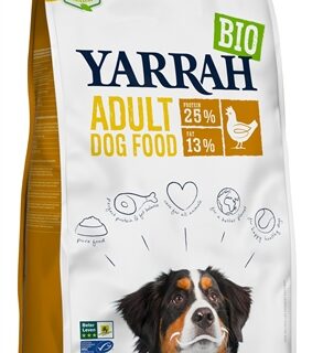 Yarrah Dog Biologische Brok Kip van 15 kg is een licht verteerbare hondenbrok met kip. Een volledige maaltijd zonder kunstmatige toevoegingen voor een gezonde maag- en darmwerking en een stevige ontlasting. Yarrah Dog 100% Biologische Brok met kip is een zeer licht verteerbare en smakelijke hondenbrok. Het bevat alle essentiële bestanddelen in uitgebalanceerde hoeveelheden voor een gezond en actief hondenleven. Organic Dog Food met Kip is een complete maaltijd, dus u hoeft niets extra’s bij te voeren. Door de zorgvuldig uitgekiende samenstelling en de afwezigheid van schadelijke stoffen is de kans op allergische reacties en maag- darmstoornissen nihil. Bovendien zorgt Yarrah voor een stevige ontlasting die eenvoudig op te ruimen is.